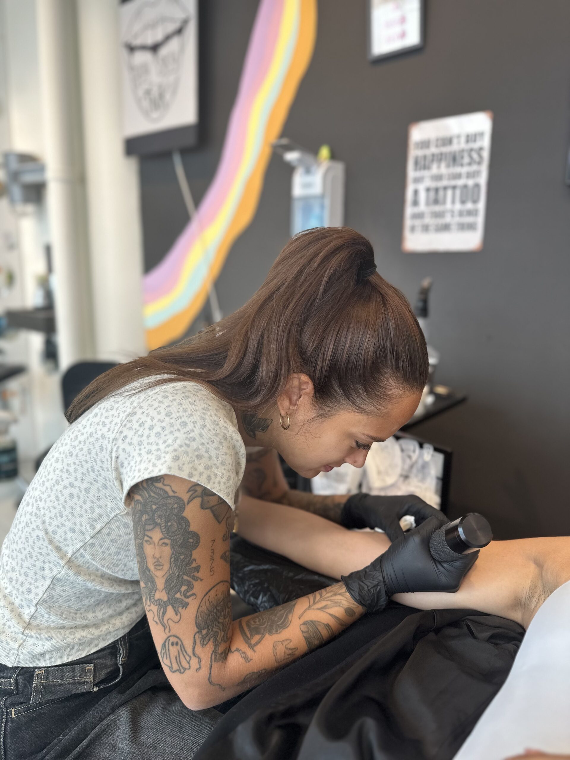 Ik nodig je met alle liefde uit om langs te komen bij Joy Sky Ink om jouw ideeën om te zetten in kunst die je voor altijd met je mee kunt dragen. Voor afspraken of informatie kun je een WhatsApp-bericht sturen naar het onderstaande telefoonnummer, en volg mij voor een blik op mijn werk op Instagram @Tatsbytiny_. Ik hoop je snel in mijn stoel te zien!